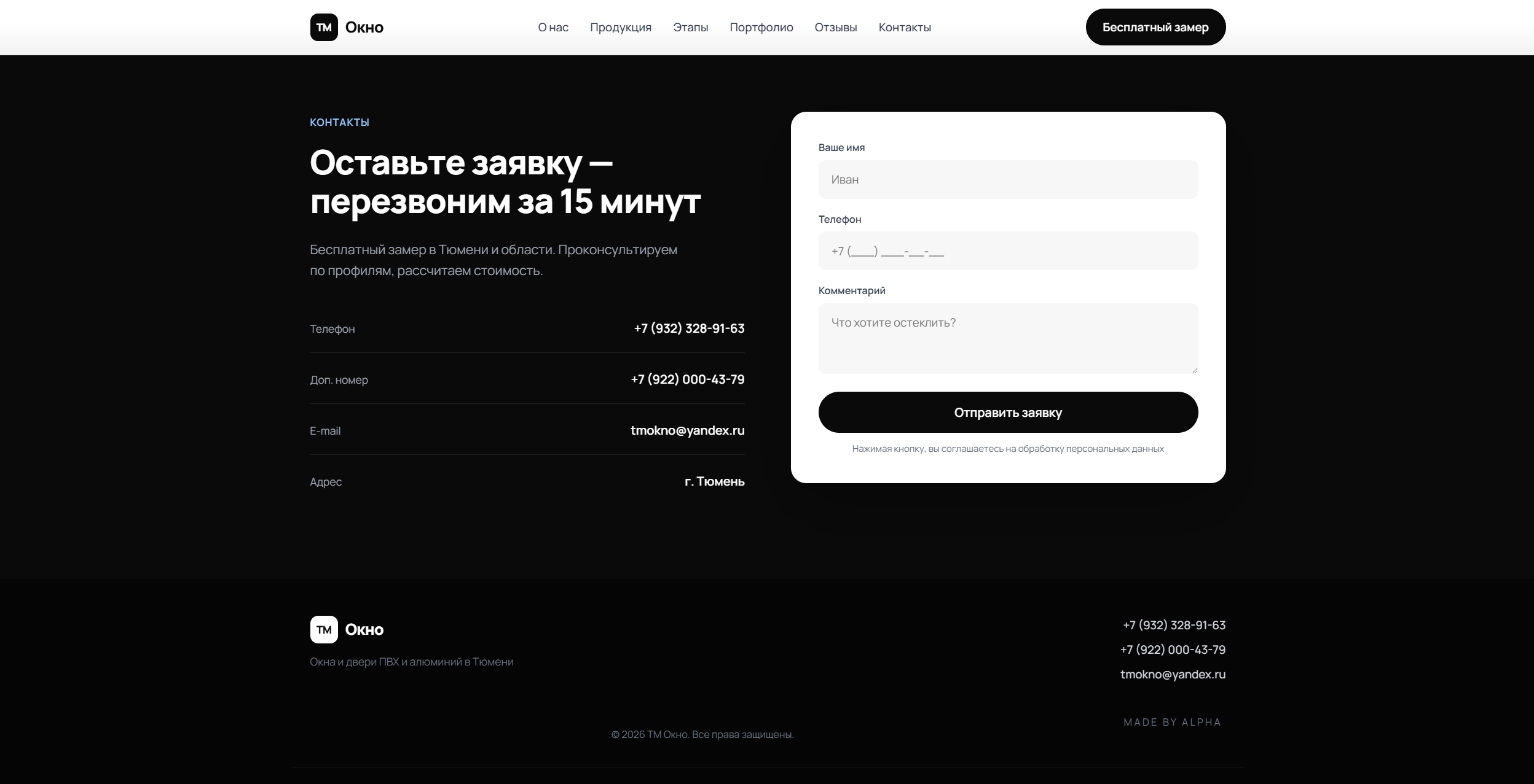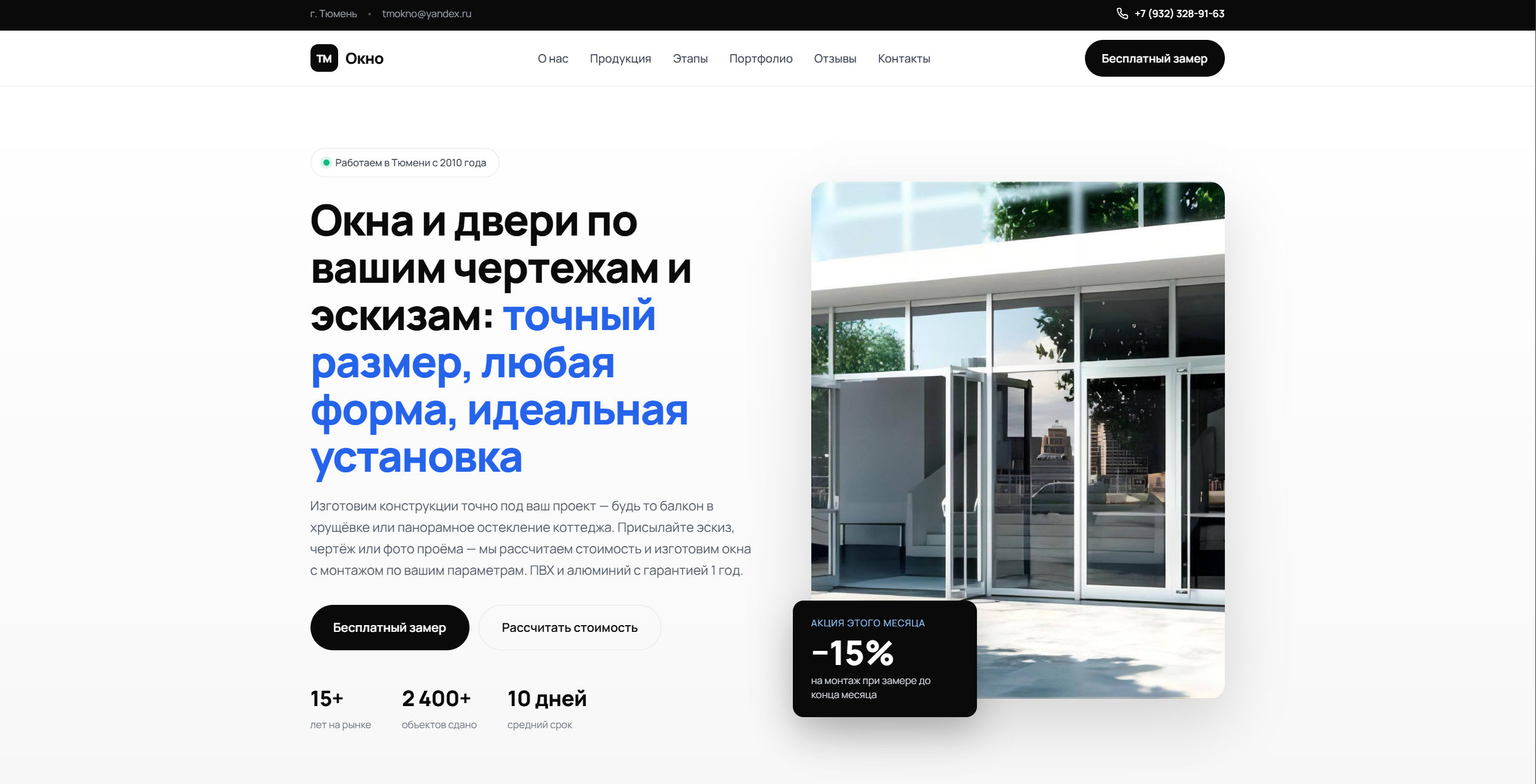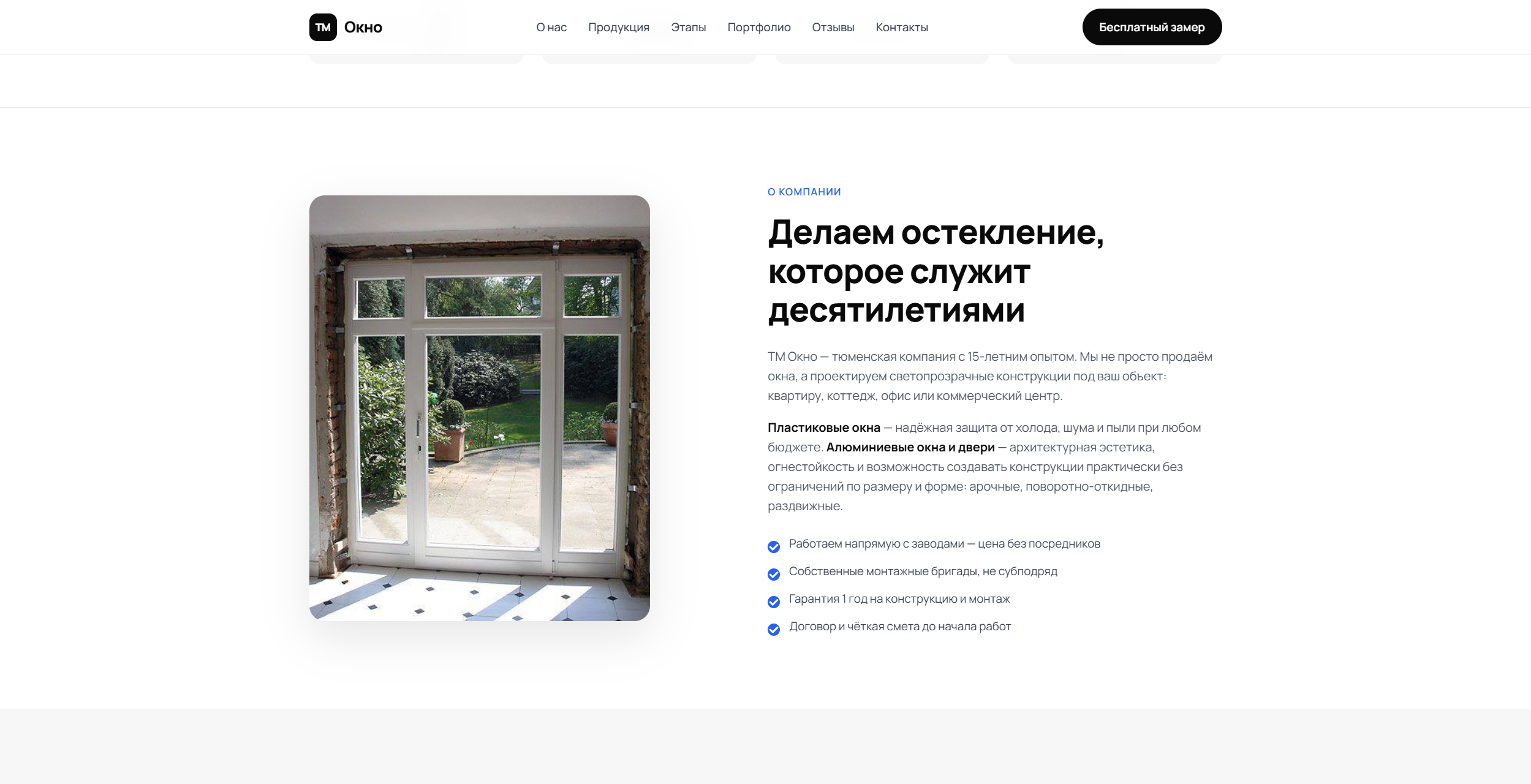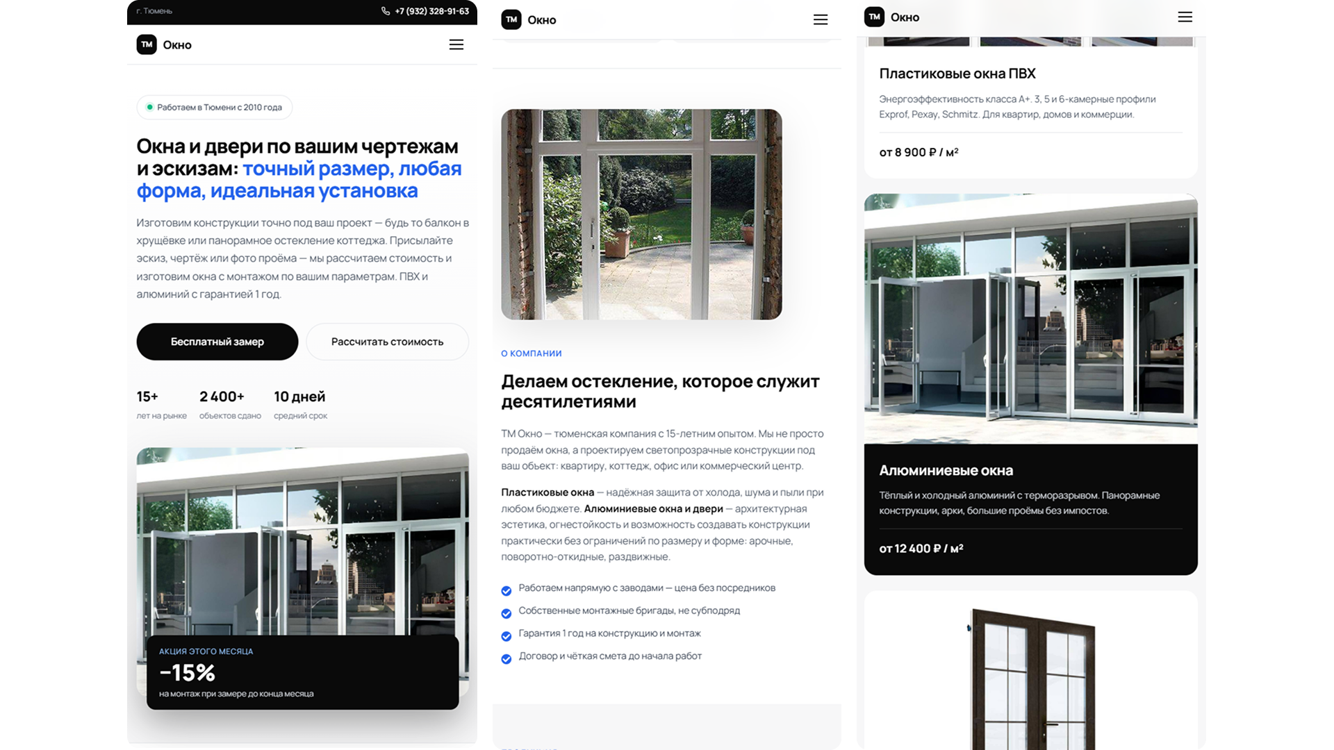 Виталий, владелец компании по производству и реализации решений для остекления на заказ, обратился к нам в момент, когда бизнес уже вышел на этап роста и уперся в ограничение по digital-упаковке. Компании был нужен не просто сайт “для присутствия в интернете”, а понятный, быстрый и убедительный лендинг, который можно уверенно использовать как основную посадочную страницу под рекламный трафик. Главная задача заключалась в том, чтобы за короткий срок собрать страницу, которая помогает продавать: быстро объясняет ценность услуги, усиливает доверие к подрядчику, снимает базовые возражения и ведет пользователя к отправке заявки без лишних шагов. Для ниши остекления это особенно важно, потому что чек у услуги выше среднего, решение редко принимается спонтанно, а ощущение надежности компании влияет на конверсию почти так же сильно, как и цена. Почему проект стал нужен именно сейчас? Когда компания растет, поток клиентов уже нельзя строить только на рекомендациях, случайных входящих и удачных обстоятельствах. Бизнесу нужен управляемый канал, который позволяет привлекать обращения предсказуемо, а не по принципу “повезло - не повезло”. Именно с этой задачей клиент пришел к нам: нужна была рабочая посадочная страница, способная стать частью системы продаж. Мы сразу исходили из того, что лендинг должен решать сразу несколько задач. Он должен производить правильное первое впечатление, помогать быстро понять суть предложения, показывать, что перед пользователем не случайная компания, а компетентный подрядчик, и доводить человека до действия в тот момент, когда интерес еще не успел остыть. • Собрать сильную посадочную страницу под рекламный трафик. Понятно упаковать услугу и выгоды компании. Снять часть сомнений еще до контакта с менеджером. Сократить путь пользователя от интереса до заявки. Автоматизировать прием обращений через форму на сайте. С какими проблемами пришел клиент 1. Слабая digital-упаковка. Онлайн-презентация бизнеса не отражала уровень компании и не помогала быстро донести ценность услуги. Пользователь мог зайти на сайт, но не получить достаточного количества аргументов, чтобы оставить заявку. 2. Случайный характер обращений. Лиды не создавали ощущения стабильности. Для масштабирования бизнеса нужна была предсказуемая точка входа, которую можно усиливать рекламой и понятной логикой страницы. 3. Лишнее трение перед заявкой. В нише, где клиент выбирает подрядчика внимательно, важно не усложнять путь лишними действиями. Пользователю нужен короткий сценарий: понять предложение, убедиться в адекватности компании и быстро отправить запрос. 4. Неготовность к платному трафику. Если вести рекламу на слабую посадочную страницу, часть аудитории теряется уже на первом экране. Поэтому сайт нужно было собрать так, чтобы он выдерживал трафик из Директа и работал как воронка, а не как формальность